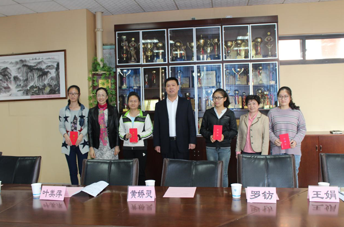 最后,黄进发、黄娇灵和叶美萍向我校少数民族预科班的贫困生颁发了慰问金。