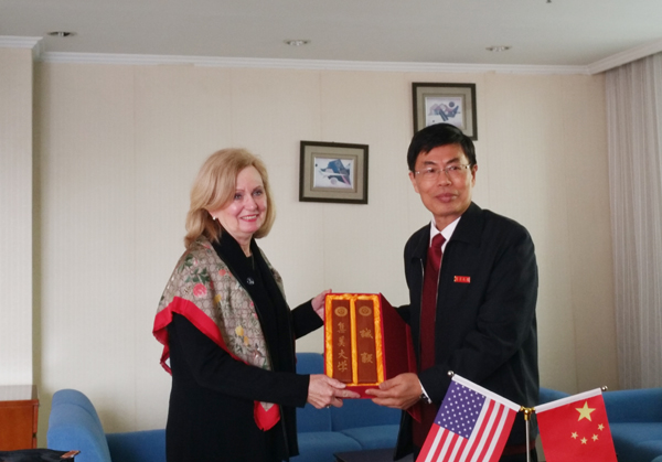 1月16日上午,校长苏文金会见了美国新泽西州圣伊丽莎白大学校长海伦•史翠柏、美国圣伊丽莎白大学中国总校区校长助理黃磊康博士一行,两校正式签署了合作意向书。