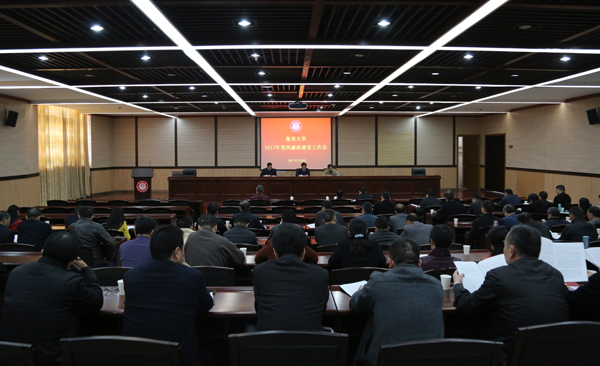3月9日下午,我校召开2017年党风廉政建设工作会,深入学习贯彻党的十八届六中全会、十八届中央纪委七次全会和省纪委十届二次全会精神,总结2016年党风廉政建设工作,部署我校2017年党风廉政建设和反腐败工作。全体校领导、校纪委委员、中层以上干部、各二级单位党委纪检委员、专职纪检监察审计干部参加了会议。会议由校党委常委、纪委书记童建福主持。