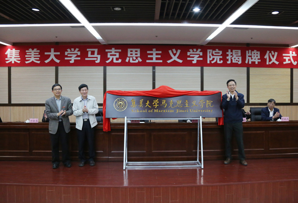 在揭牌仪式上,校长李清彪宣读了关于马克思主义学院成立的文件,郑传芳、校党委书记辜芳昭、李清彪共同为马克思主义学院揭牌。