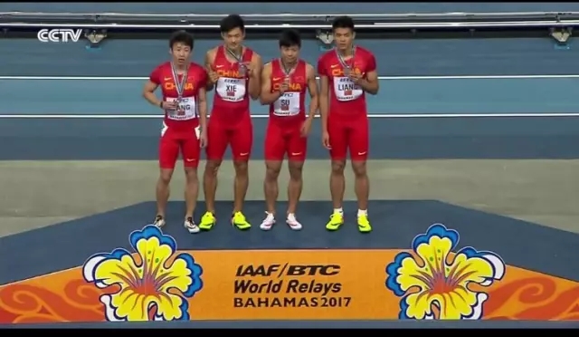 2017年,巴哈马接力世锦赛,参加中国男子4×100米接力队在决赛中,以39秒22获得第三,成为第一支在接力世锦赛上进入前三的中国接力队!