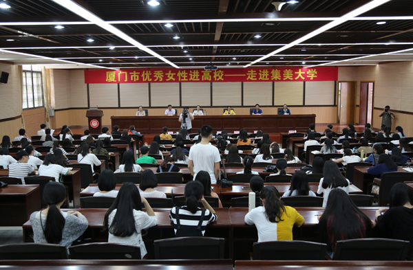 “优秀女性进高校”活动是厦门市妇联为积极响应全国妇联“巾帼建新功,共筑中国梦”号召的重要举措之一,旨在宣扬男女平等基本国策,宣传女性“四自”精神,引领女大学生群体树立正确的价值观、道德观、家庭观、恋爱观;通过先进妇女典型弘扬中华民族传统美德,培养当代女大学生崇尚英模、见贤思齐的素养,在厦门高校范围内掀起一股传播优秀女性正能量的热潮。