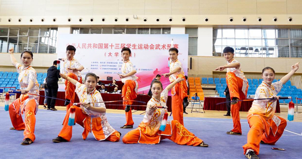 近日,第十三届全国学生运动会武术预赛在上海中医药大学举行,来自全国各省市自治区和澳门特别行政区的24支队伍参加了比赛。我校代表队发挥出色,共获得2金、5银、3铜的优异成绩,代表我校参赛的张昭燕、程心、骆汉森等8名同学全部获得9月份将在杭州举行的决赛参赛资格。