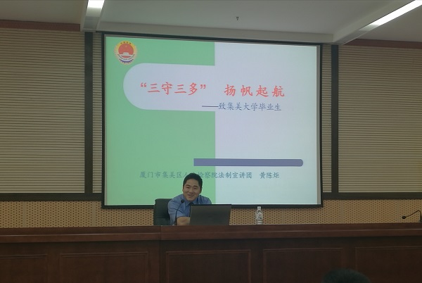 6月6日下午,校纪委邀请集美区检察院检察官为我校部分毕业生代表作题为《“三守三多”,扬帆起航》的廉洁教育讲座,此次讲座是我校面向全校毕业生开展的 “走好社会人生第一步”的廉洁教育系列活动之一。
