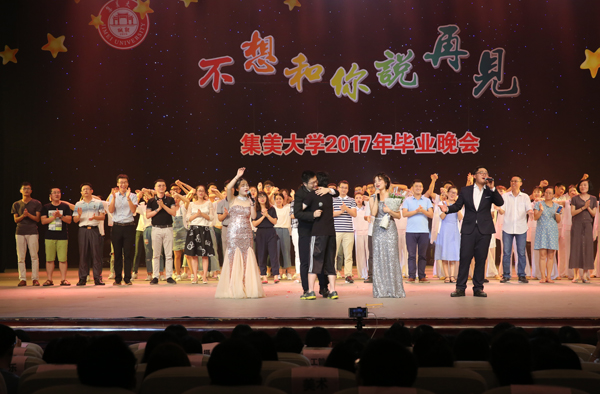 合唱《匆匆那年》拉开了晚会的序幕,晚会分为“青葱校园 岁月无忧”“花香常伴 恋念昨夕”“幸福人生 扬帆启航”三个篇章。两首原创歌曲《书香乐韵学村梦》和《笑着说再见》,表达了集大学子对校园生活的眷恋和对未来的期待,演绎了集大的记忆和毕业别绪;改编歌曲《木棉花开的校园》和集大版《成都》,带着毕业生们一起重温了大学生活,重游了大学校园;酷炫的魔术、相声《我是毕业生》让同学们在笑声中与集大握别;舞蹈《往事只能回味》表达了集大学子对师恩的难忘;歌曲《祝你一路顺风》和毕业生演讲《我们毕业了》等精彩节目精彩上演,为毕业生们送上暖心的祝福。由毕业班辅导员和学生共同演唱的歌曲《祝福》将晚会引向高潮,当全体毕业班辅导员随着提前录制好的祝福视频出现在舞台上时,全场响起了热烈的掌声,现场的毕业生们纷纷跑上台与老师们拥抱话别、相拥而泣。