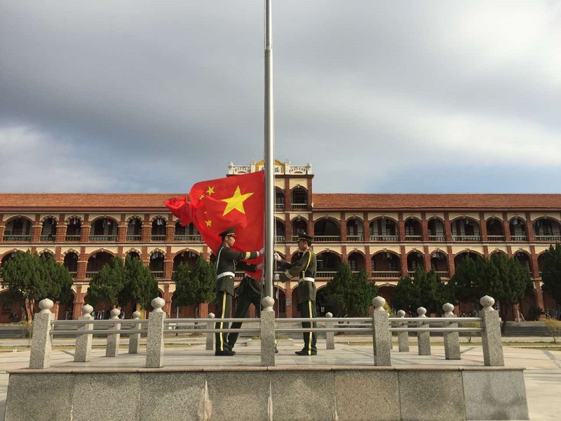 晨光熹微的校园,航海学院允恭楼前陆陆续续聚集了自发前来参加升旗仪式的同学们,国旗护卫队的同学早早开始彩排,他们想用最标准的姿势和最美的姿态表达对祖国母亲的生日祝福。