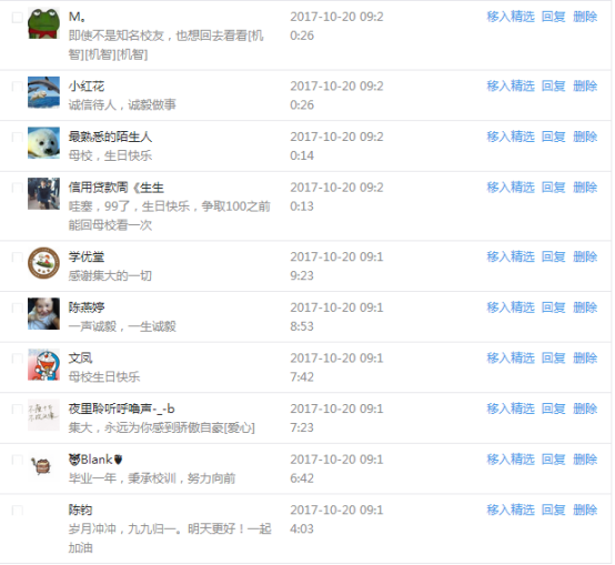 今天是我校建校99周年纪念日,学校官方微博、微信同步推送校庆日专题,得到了海内外各届校友的积极关注,校友纷纷为母校留言点赞,截至发稿时至,微博总浏览量4.9万,留言数76,点赞数222;微信推文总浏览量2.63万,H5祝福专题超过50万人次点赞祝福,微信后台留言数681,点赞数795。海内外校友在留言中表达了对在母校学习生活的时光的怀念,感谢母校的培育,祝福母校生日快乐!希望母校越办越好!
