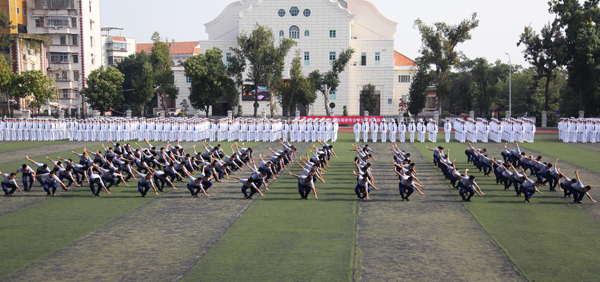参加军事会操的同学们精神饱满,意气风发,进行了分列式和军事科目表演,充分展示了我校航海类专业学生的风采和半军事化管理所取得的成效,赢得了全场师生的热烈掌声。航海学院第二、三方队,轮机工程学院第一、四方队,诚毅学院方队获分列式优秀奖;航海学院护旗方队、捕俘拳表演方队获特别贡献奖。