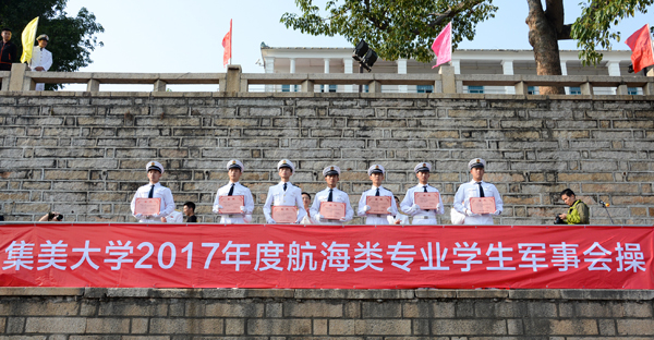 12月6日下午,2017年度航海类专业学生军事会操在航海学院操场举办。校党委书记辜芳昭,校长李清彪,校党委副书记郑志谦、洪文建,纪委书记童建福,以及学校相关职能部门和学院负责人等出席观看会操活动。