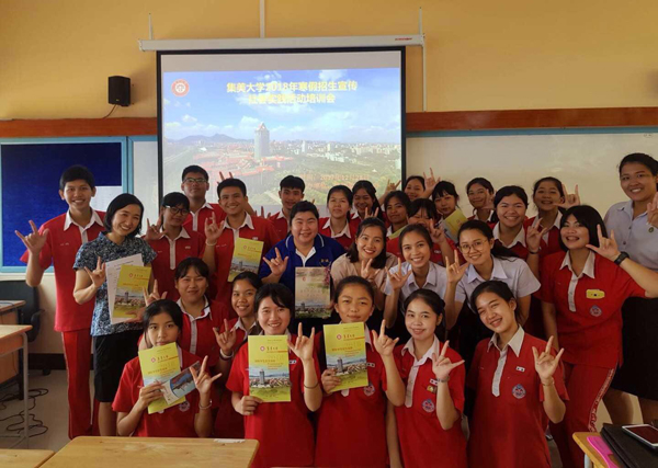 寒假期间,我校国际学生实践队成员21人到泰国、马来西亚、印尼、越南和柬埔寨等5个国家的16所学校开展“百年集大我代言”招生宣传社会实践活动,受到当地师生的欢迎,提升了我校的海外知名度。这是我校首次组织的国际学生寒假招生宣传实践活动。