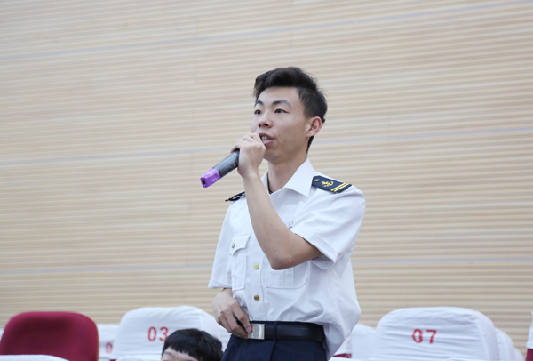 在报告中,陈毅鹏分析了全球经贸和集装箱行业发展趋势以及港口发展形势,通过几组数字的对比展示了当今集装箱行业在中国贸易中的地位,分析了船舶大型化给港口带来的机遇与挑战,用视频展示了中国第一个拥有自主知识产权的全自动化码头、全球首个自动化堆场平行岸线布置的自动化码头——厦门远海集装箱码头的运行情况。陈毅鹏还就多个航运业常识问题与在场学生互动,用“夫唯不争,故天下莫能与之争”“多干事不吃亏”两句座右铭,勉励在场师生积极主动地面对生活,乐于接受任务,低调做人、高调做事。