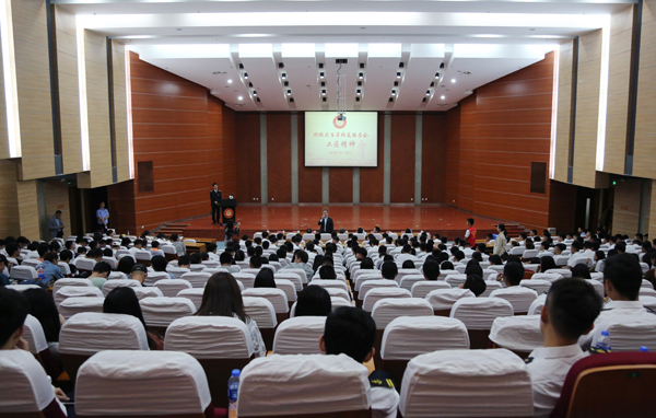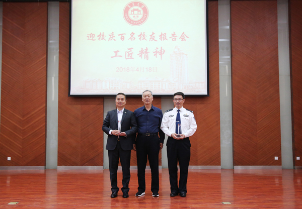 4月18日,以“工匠精神”为主题的“迎校庆百名校友报告会”(第十一场)在尚大楼105报告厅举行,我校校友厦门远海集装箱码头有限公司总经理陈毅鹏和厦门市公安局指挥情报中心主任杜昌营与我校师生畅谈集大人的“工匠精神”。我校校友会副会长兼秘书长、原副校长黄德棋,校内相关部门、学院领导,在校生代表500人等聆听了报告。