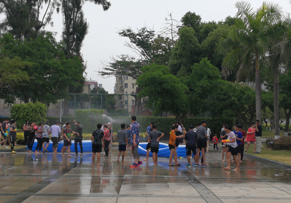 4月21日上午,我校陈爱礼国际学院(海外教育学院)泰国留学生在嘉庚图书馆前广场举办了泼水节活动。泰国驻厦门领事馆副领事孟坤先生,我校海外教育学院有关领导,来自厦门市泰国归侨联谊会、集美学校泰国校友会的代表,与泰国留学生一起欢度泼水节。