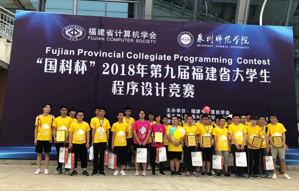 6月10日,2018年第九届福建省大学生程序设计竞赛在泉州师范学院举行。我校组织了12支队伍参赛,共获得1项金奖、3项银奖和4项铜奖的佳绩,创我校参加该赛事以来的历史最好成绩。