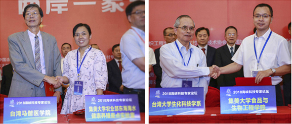 会上,桂建芳,国家海水鱼类产业技术体系首席科学家关长涛研究员,台湾大学/马偕医学院蔡怀桢教授,台湾大学生化科技学系特聘教授潘子明等作特邀报告,35名专家作了研讨报告。我校农业部东海海水健康养殖重点实验室与台湾马偕医学院合作的项目《大黄鱼重要经济性状的遗传解析和育种基础研究》、食品与生物工程学院与台湾大学生化科技学系合作的项目《水产食品过敏及其致敏性消减》进行了签约。