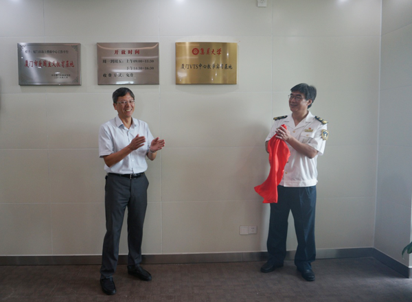 曹敏杰和厦门海事局副局长王玉宝、厦门港引航站站长陈伯雄分别为“厦门海事局VTS中心教学实践基地”“厦门港引航站教学实践基地”揭牌。