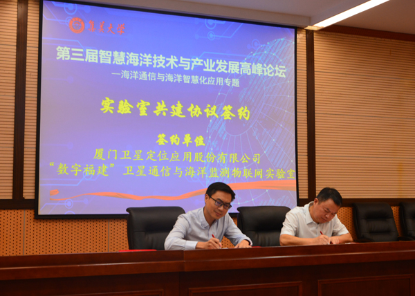 航天泰坦科技股份有限公司、蓝海天网科技有限公司、深圳市智慧海洋科技有限公司、我校“数字福建”卫星通信与海洋监测物联网实验室分别进行产品推介和产业发展经验分享。航天泰坦科技股份有限公司、厦门北斗通信信息技术股份有限公司、厦门卫星定位应用股份有限公司等企业还与我校“数字福建”卫星通信与海洋监测物联网实验室签订共建协议。