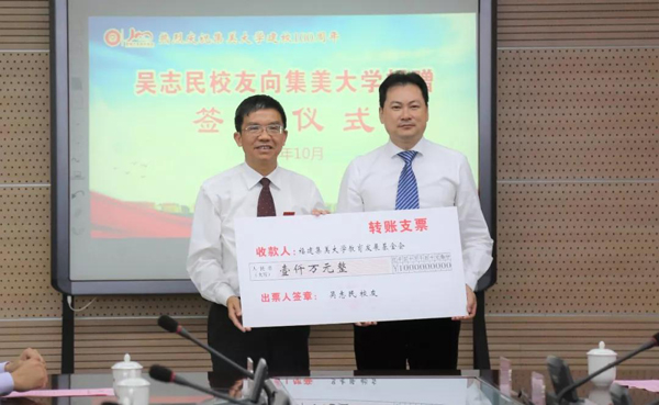 10月16日,我校中文89级校友吴志民回到母校,并以个人名义向母校捐赠1000万元,献礼百年集大。
