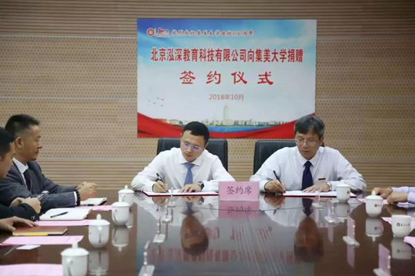 10月17日,我校与北京泓深教育科技有限公司签订捐赠协议,北京泓深教育科技有限公司向我校捐赠1000万元。