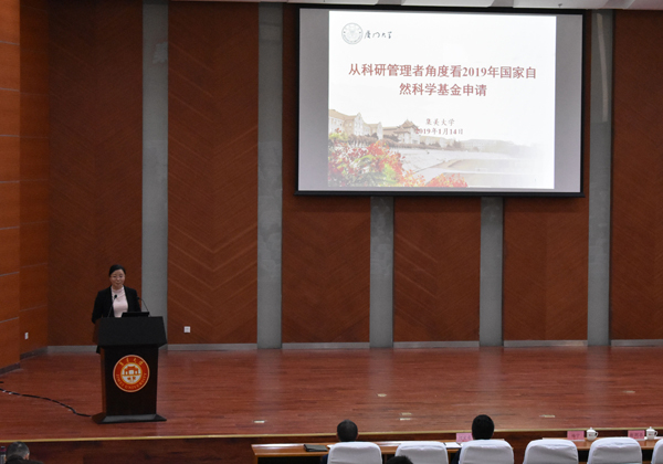 为做好2019年度国家自然科学基金申报工作,1月14日上午,学校在尚大楼105室召开了2019年度国家自然科学基金申报动员暨辅导报告会。校党委常委、副校长谢潮添出席会议并作动员报告,我校科研处工作人员,各理工科分管科研院长、科研联络员和相关教师300多人参加了会议。