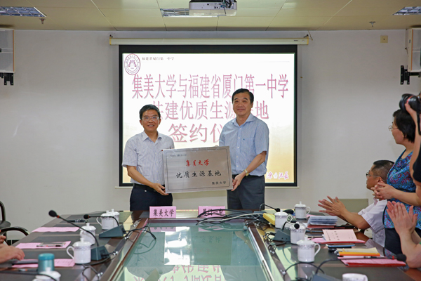 6月13日,我校与厦门第一中学在厦门第一中学高中部签订了“优质生源基地”协议,并举行了授牌仪式,厦门第一中学成为我校首家“优质生源基地”。我校校长李清彪、副校长曹敏杰,学校办公室、校友会、招生办、师范学院和计算机工程学院等相关部门和学院负责人参加了签约仪式。