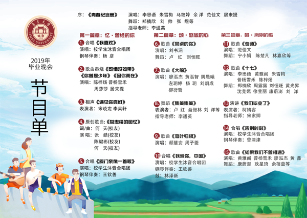 晚会从舞蹈演员手中的一张“亚洲中文精品乱码录取通知书”开始,通过“忆·曾经的你”“颂·感恩的心”“唱·离别的歌”三个篇章的叙述,和在场的毕业生们一同畅想“如果我们不曾相遇”,一同感恩“幸好我们相遇”,表达了毕业生对同学、老师、学校和祖国的感恩之情和离别在即的眷恋之情。合唱《我喜欢》和《厦门亲像一首歌》和毕业生们一同重温了初遇集大时懵懂青涩的日子,相声《遇见你真好》在欢笑中倾诉了相遇在集大那些温馨感动的点点滴滴,歌曲《青春纪念册》《同桌的你》和毕业生们一同回顾了青春激扬的校园生活,歌曲《老师》表达了毕业生对老师四年教诲的感激之情,舞蹈《集美集美》和歌曲《落叶归根》表达了毕业生对陈嘉庚先生和母校的感恩之情,校友何天创作的《尚忠楼的回忆》勾起了毕业生们对4年大学生活的美好回忆,合唱《我爱你中国》表达了我校毕业生对成长在新时代的感恩和建功新时代的决心,合唱《告别时刻》、演讲《我们毕业了》将毕业生们的感恩和离别之情推向了高潮。