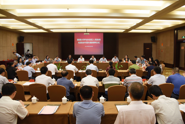 6月28日,我校与龙岩市永定区共同召开对口支持对接交流会,并签订了对口支持框架协议。校党委书记沈灿煌,校党委常委、副校长于洪亮,学校相关部处负责人,永定区长陈荣水及区领导曾佑繁、潘登、詹萃芳等参加了交流会。