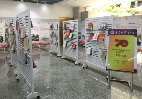 9月29日,为深入学习贯彻习近平新时代中国特色社会主义思想和党的十九大精神,庆祝中华人民共和国成立70周年,我校在陈延奎图书馆二楼阅读文化展区举办庆祝中华人民共和国成立70周年主题书展,以激发全校师生的爱国热情。