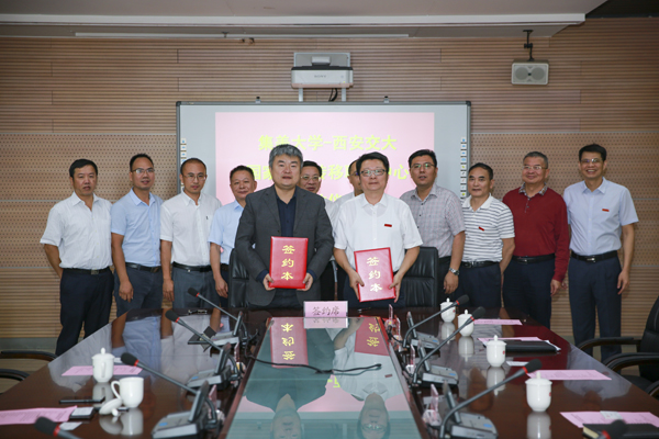 校党委书记沈灿煌、副校长谢潮添,西安交通大学国家技术转移中心主任王文、西安交通大学国家技术转移中心厦门分中心主任谢鸿年,学校办公室、发展规划处、科研处、机械与能源工程学院、信息工程学院相关负责人等出席仪式并见证签约。