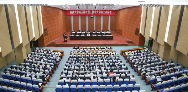 12月24日下午,我校第五届教代会第二次会议在尚大楼105报告厅开幕。开幕式由校党委副书记郑志谦主持,校领导、教代会正式代表、特邀代表和列席代表参加开幕式。