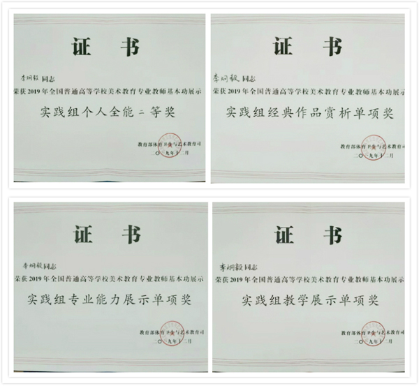 近日,由教育部主办,福建师范大学承办,教育部艺术教育委员会、中国艺术教育促进会协办的全国首届普通高等学校美术教育专业教师基本功展示在福建师范大学举行。经过激烈角逐,我校美术与设计学院教师李炯毅获实践组个人全能二等奖、实践组经典作品赏析单项奖、实践组专业能力展示单项奖、实践组教学展示单项奖。
