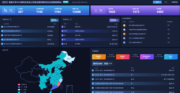 共有1920名毕业生报名参会,投递简历4463份,毕业生与企业通过平台在线面试交流共计500余人次。