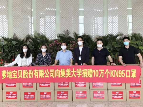 新冠肺炎疫情发生以来,爹地宝贝股份有限公司持续关注学校疫情防控。林颜挺校友心系母校,关心师生身心健康,主动联系母校,希望能为母校防疫工作贡献一份力量。在得知学校即将复学、防疫物资紧张的情况下,积极捐赠10万个KN95口罩,为在校师生做好健康防护提供基础保障。