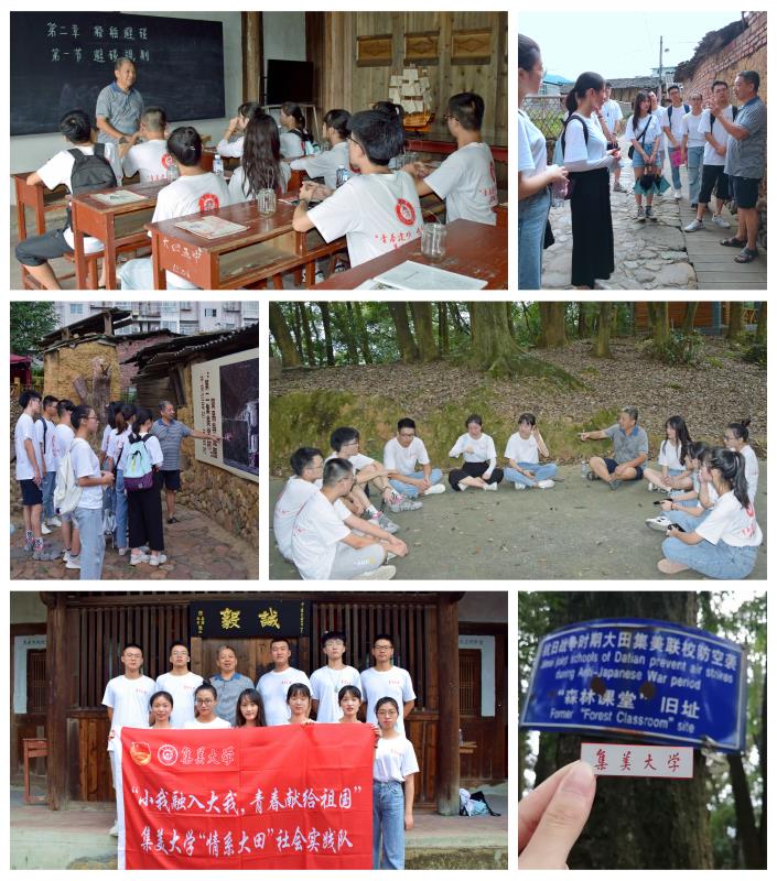 今年恰逢陈嘉庚先生创办航海、财经教育百年,为传承、弘扬好嘉庚精神,进一步挖掘内迁期间集美学校可歌可泣的历史故事,实践队通过拜访大田县文旅局、请教大田县关工委的范立洋老师,实地体验“森林课堂”等历史故地,系统了解了集美学校内迁办学历史,并深入挖掘出内迁办学中诸如“单骑千里”“筹粮济学”“塔兜潭跳水”等展现集美教职工优秀师德师风的故事,并设计制作故事集,在此基础上还创作“献礼百年”诗歌脚本,使当年集美学校教师“无畏烽火育青禾”精神薪火相传。同时实践队还在调研走访的基础上,完成“第二集美学村”旧址陈列馆扩建修缮的调研报告,提出意见建议,协助大田文旅局更好地开展扩建修缮工作。