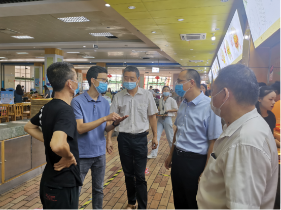 谢潮添分别就食堂疫情防控、供餐保障、食品安全、节约粮食等方面进行了细致的检查,并现场关心询问学生对于饭菜品质、价格方面的感受。在检查诚毅二楼食堂开业情况时,他要求后勤集团加快小吃档口筹备,尽快为师生提供更多就餐选择。