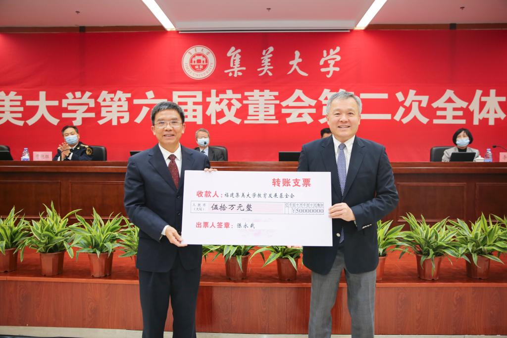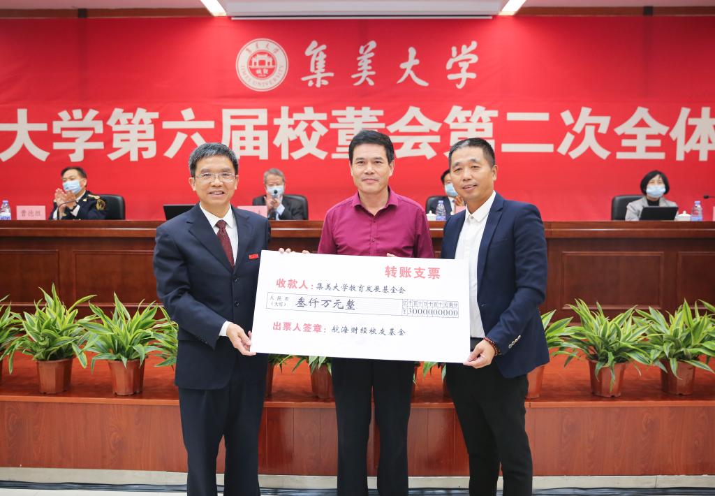 会议还举行了捐赠仪式。一年来,学校收到校董校友及社会各界捐款超过7000万元。