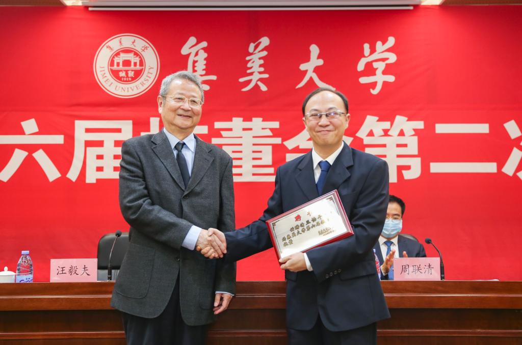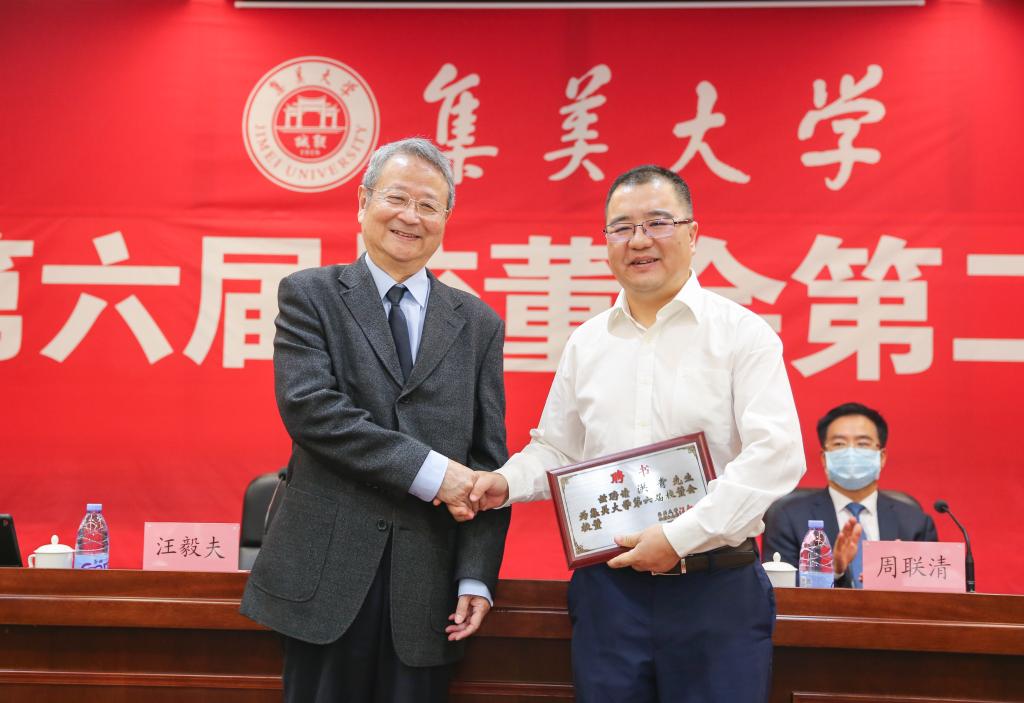 会上,校董会主席汪毅夫为新聘校董会成员颁发聘书。