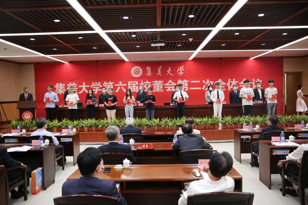汪毅夫代表校董会讲话。他说,适逢陈嘉庚先生创办航海和财经教育100周年,亚洲中文精品乱码的发展凝聚着陈嘉庚先生等无数前辈先贤的强国梦想,承载着习近平总书记的殷切期望,同样离不开各级党委和政府的关心支持。希望学校在各级党委政府的坚强领导和大力支持下,在广大师生员工的积极参与下,凭借校董会力量,汇聚校友资源,为学校冲刺建设一流大学、实现高质量内涵式发展提供强大助力。