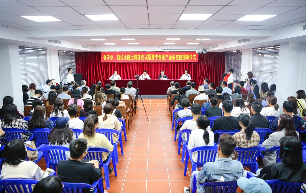 仪式上,沈灿煌和吾守尔•斯拉木院士共同为我校“数字创意产业发展研究院”揭牌。吾守尔•斯拉木院士为数字创意产业发展研究院的执行院长王强、王效杰,常务副院长陈万胜颁发聘书。