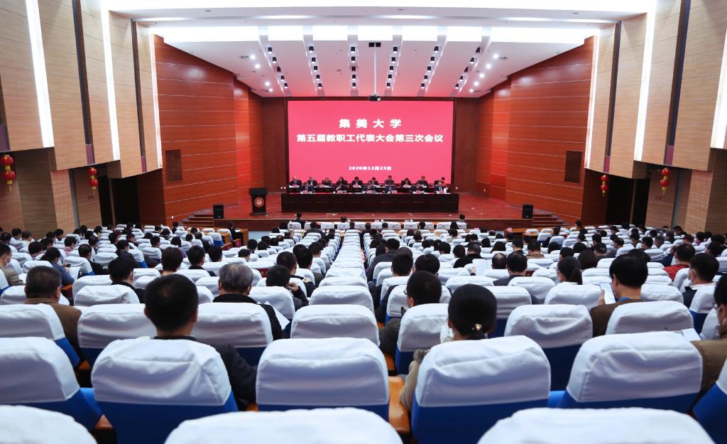 会议通过了第五届教职工代表大会第三次会议决议。会议号召,全校教职工站在“两个一百年”历史交汇点上,以推动学校高质量发展为主线,以更高的站位,着眼长远、把握大势,继续保持奋发有为精神状态,解放思想,开拓创新,求真务实,真抓实干,坚定不移地朝着建设一流大学的目标不懈奋斗。