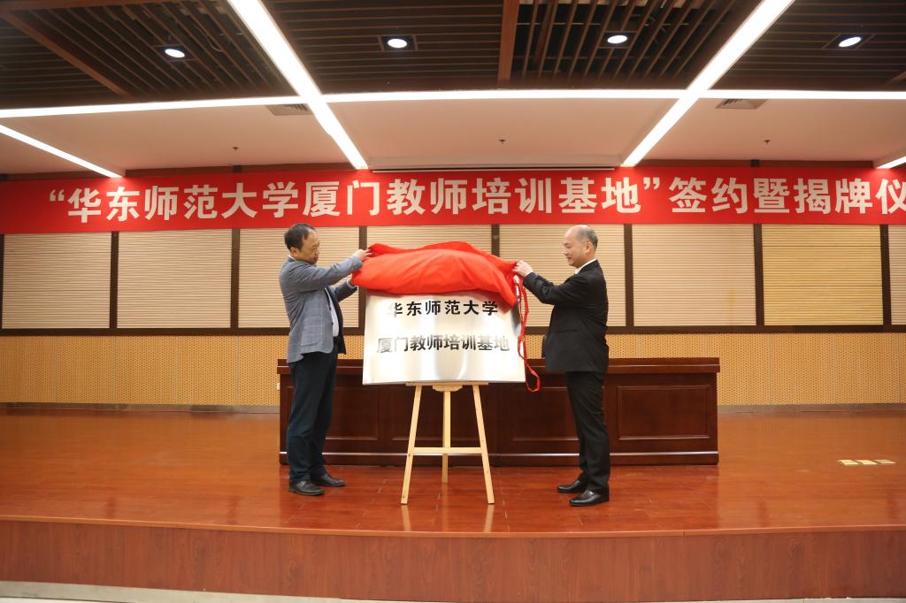 “华东师范大学厦门师训基地”的揭牌,预示着华东师范大学与我校教师培训工作进入了一个新的起点。华东师范大学将利用校内外优质学术资源,在管理架构、课程资源、人员配备、组织保障等方面与我校开展深度合作,辐射带动区域教师发展、落实培训研修任务、研发特色培训项目、促进教师培训管理者专业提升,为厦门市乃至福建省打造优质教师培训基地。