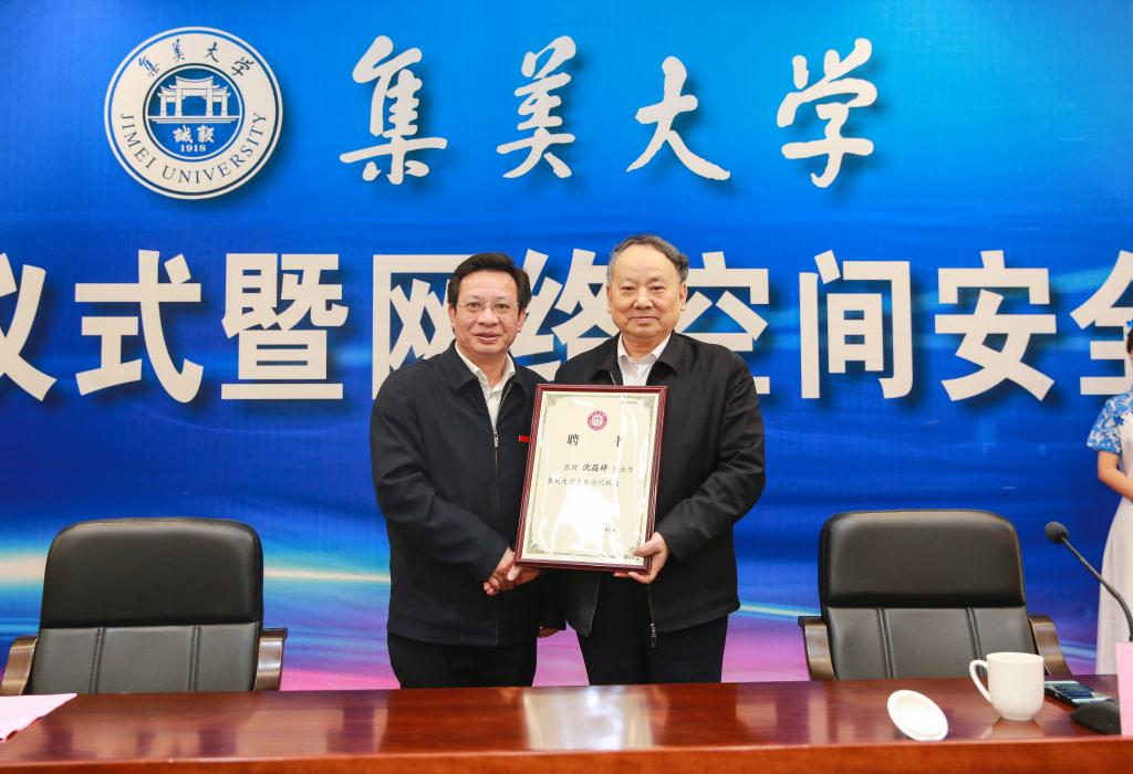 沈灿煌在聘任仪式上致辞,对沈昌祥院士加盟我校表示最热烈的欢迎和最由衷的感谢。他指出,在当今的国际、国内形势下,网络空间安全建设工作至关重要。网络空间安全学院的建立既及时又必要,学校要抓住机遇点,主动服务国家战略,对接地方发展需求,紧跟学术前沿,不断开拓,做大做强。邀请沈昌祥院士加入亚洲中文精品乱码,是我校加快网络空间安全学科建设的重要举措。学校将全力支持沈昌祥院士及其团队的工作,共同为我校一流大学建设、维护国家网络空间安全作出贡献。