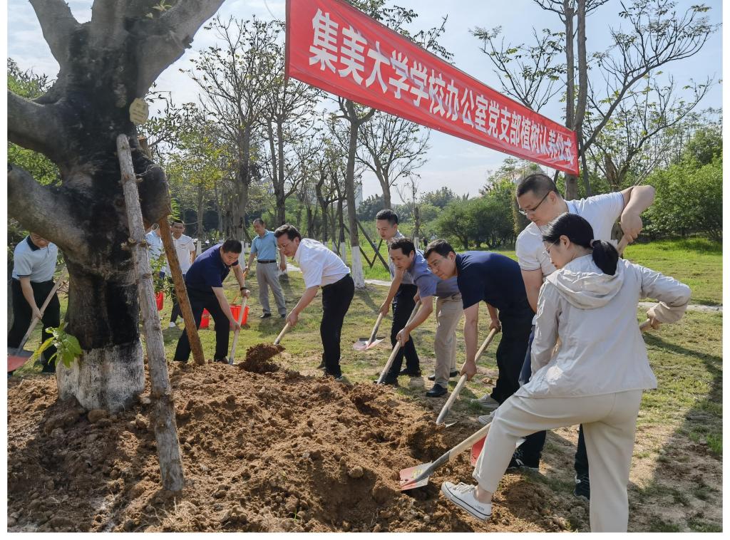 5月11日,校党委书记沈灿煌参加党支部结合开展“再学习、再调研、再落实”活动,举行“我为师生办实事,培土植树绿化校园”活动。全体党员挥锹培土,在今年植树节党支部集体捐款认养的大叶榕周围培土、浇灌,这是我校首次以党支部名义进行植树认养。