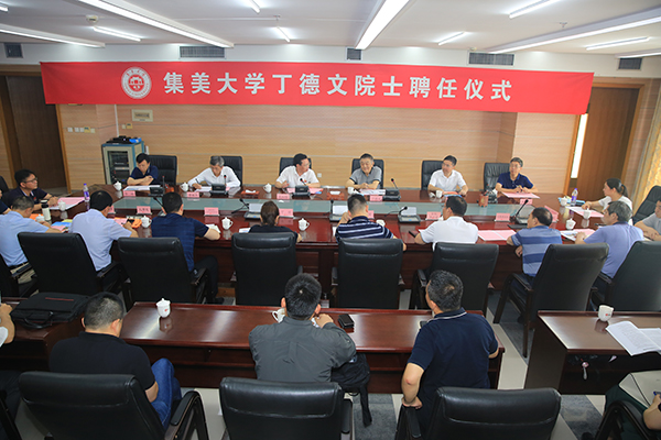 仪式上,沈灿煌为丁德文院士颁发聘任证书,佩戴校徽。