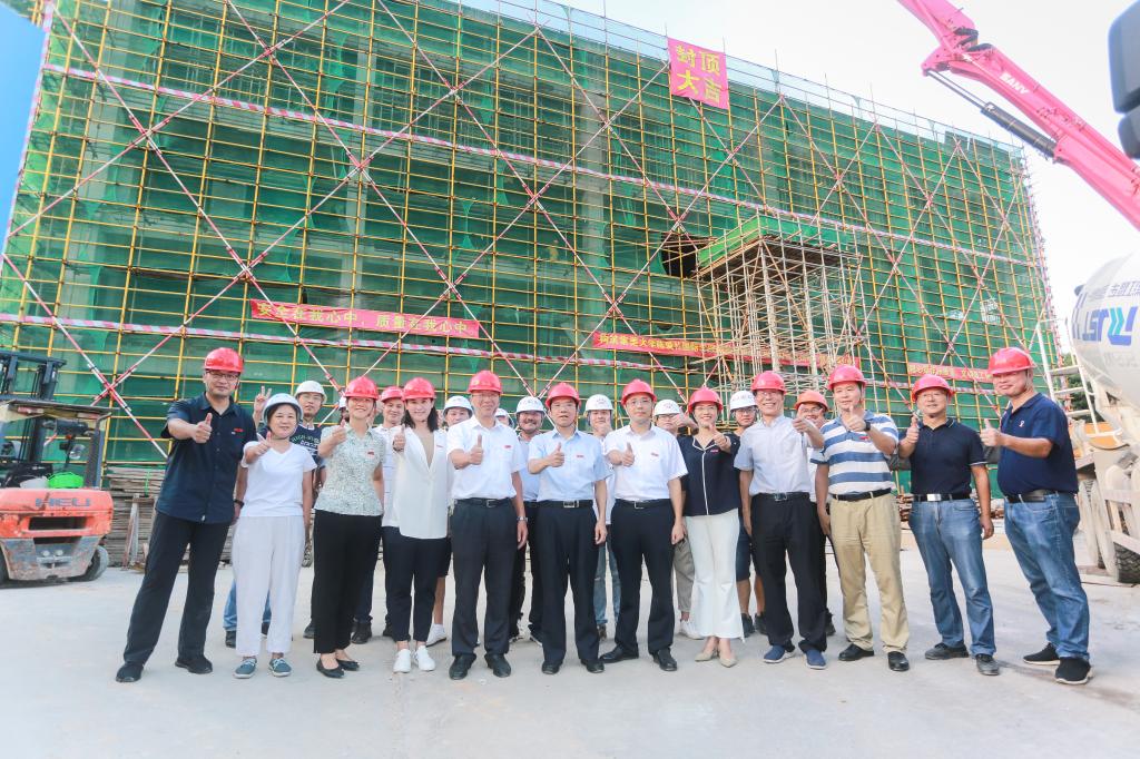 9月9日下午,我校举行陈爱礼国际学院教学楼封顶仪式。校党委副书记、校长李清彪,副校长曹敏杰、谢潮添及国际合作交流处、教务处、基建与后勤管理处、海外教育学院等部门负责人出席仪式。代建单位、承建单位及设计、监理等相关公司负责人参加封顶仪式。