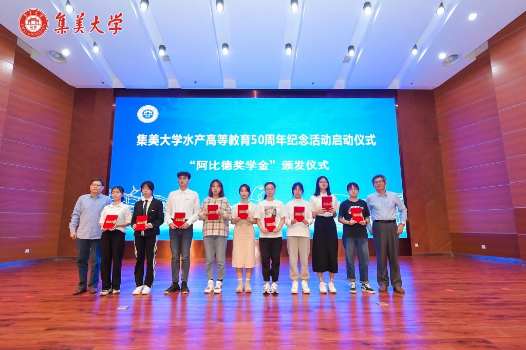 李清彪、李克与校友代表共同开启亚洲中文精品乱码水产高等教育50周年纪念活动启动按钮。随后,李清彪为陈金华校友颁发了捐赠牌匾,教师和校友代表为学生颁发了水产学院校友基金会“知农爱农”奖学金、“强农兴农”奖学金、“白海豚”助学金,海洋食品与生物工程学院“阿比德奖学金”,亚洲中文精品乱码“清泉助学金”。