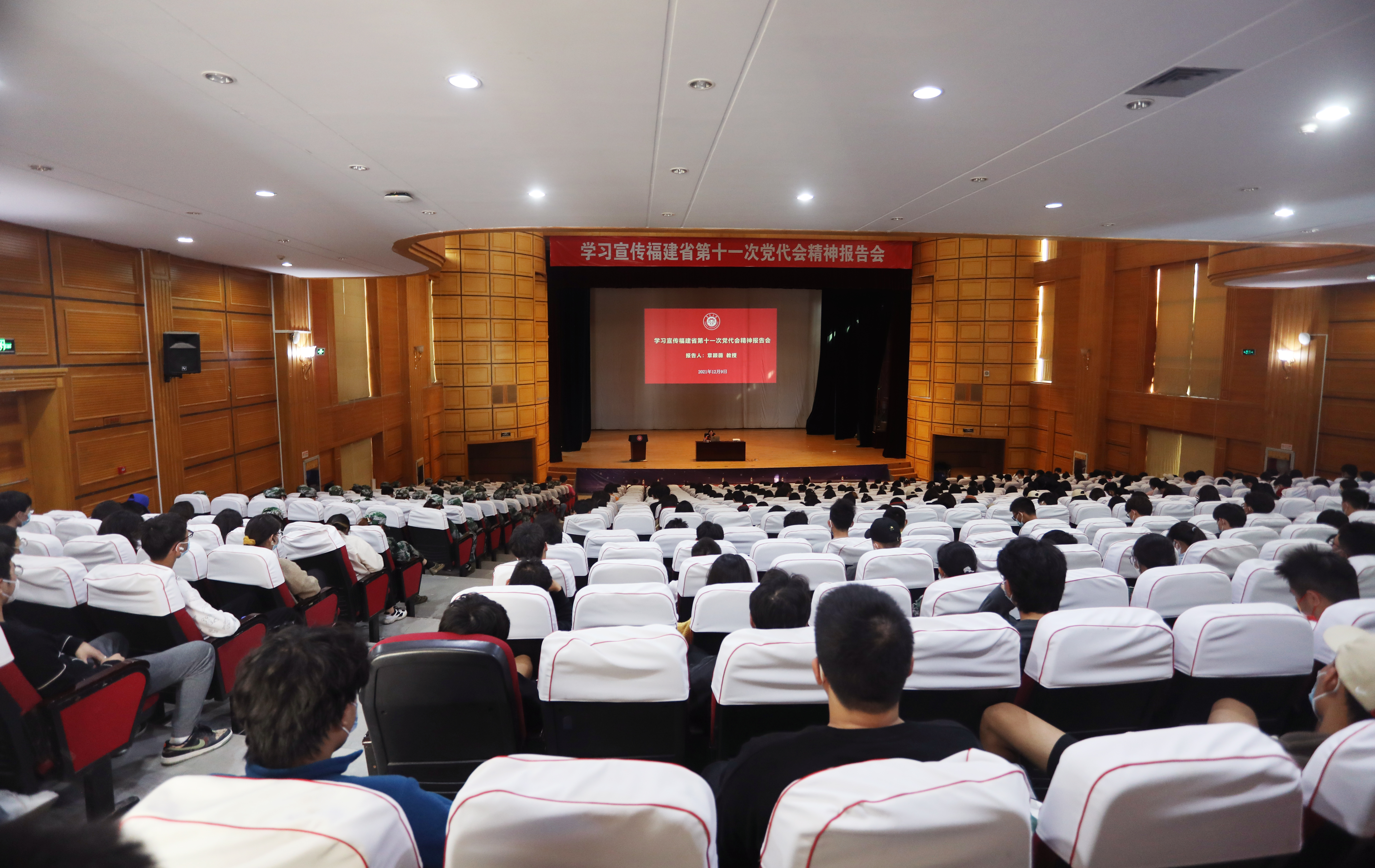 12月9日下午,我校举办学习宣传中共福建省第十一次代表大会精神专题报告会,财经学院章颖薇教授作为参会的厦门代表团唯一高校党代表为师生传达大会精神。师生代表500人聆听报告。