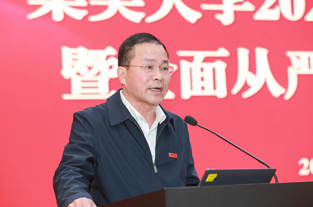 校党委书记沈灿煌讲话。他指出,要扎实推进全面从严治党向纵深发展,以一流党建引领一流大学建设。要抓好巡视巡察问题的整改和全面从严治党主体责任检查的整改,强化全体干部廉政教育,牢牢把握意识形态主动权,维护校园安定稳定。他强调,要抓紧做好影响学校发展全局的重点工作,特别是在修订人才培养方案、学科梳理和一流学科遴选、学位点申报、国家级一流本科专业建设点申报、专业认证、重大平台建设、科研项目组织和重大项目重大奖项突破、学科竞赛和考研升学就业、疫情防控等工作,要做到谋划时统揽大局、操作中细致精当,以绣花功夫把工作做扎实、做到位。他要求,要以“提高效率、提升效能、提增效益”落实全年工作。要弘扬“马上就办、真抓实干”精神;抓实干、务实功、出实招、求实效,善作善成,发扬担当和斗争精神,勇于攻坚克难。