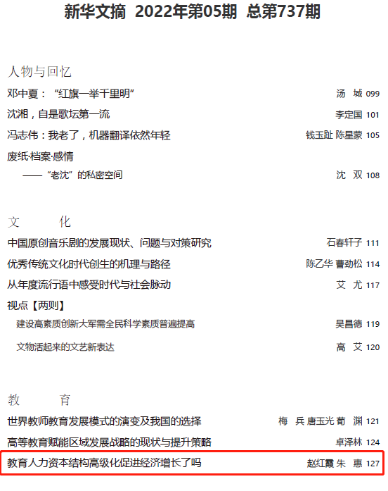 近日,我校师范学院院长赵红霞教授发表于《教育研究》(2021年第11期)的论文《教育人力资本结构高级化促进经济增长了吗》,被《新华文摘》2022年第5期转载。