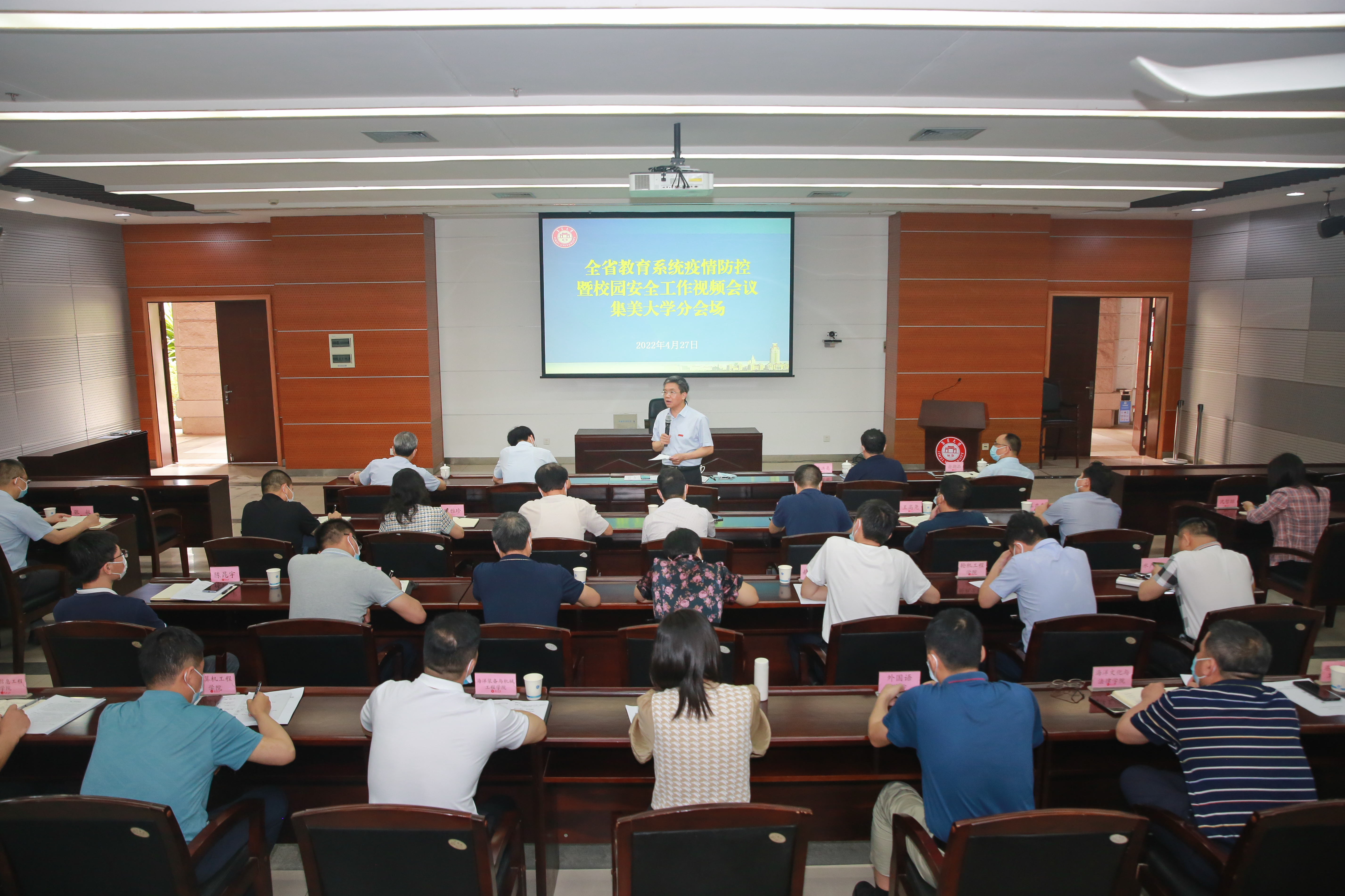 4月27日下午,全省教育系统疫情防控暨校园安全工作视频会召开。省委教育工委书记,省教育厅党组书记、厅长林和平出席会议并讲话,省卫健委副主任、一级巡视员王喜瑛出席会议并发言。会议分析研判当前全省教育系统疫情防控形势,对“五一”、当前及今后一段时间教育系统疫情防控和校园安全工作进行部署。市教育局随后召开全市教育系统疫情防控暨校园安全工作视频会议,传达学习贯彻全省会议精神,部署做好全市学校疫情防控和校园安全工作。校领导,相关工作组牵头单位、成员单位负责人,各学院党委副书记,相关工作人员参加了会议。
